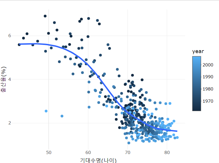 6. 그렇다면 기대수명이 증가할 수록 출산율은 감소할까?