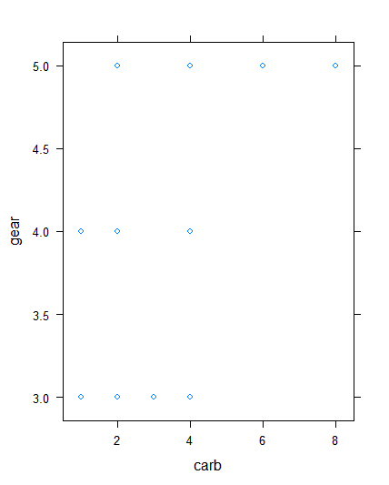 lm=plot(a$gear, a$carb) #회귀 분석(1차)