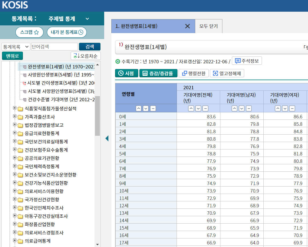 - R을 이용한 통계청 API로 남은 기대 수명 알아보기2023년 11월 11일 17시 29분 47초에 업로드 된 글입니다.작성자: r-code-for-data-analysis