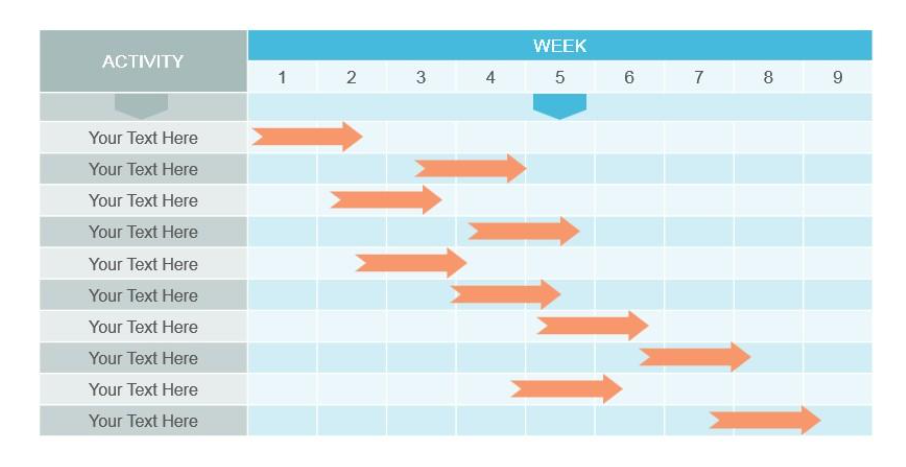 회사에서 과제를 진행하다보면 일정표를 많이 작성하게 된다. 엑셀로도 만들지만 대부분 PPT를 이용하여 아래와 같이 한장으로 만든다.